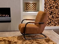 De fauteuil Caledon is een fraaie toevoeging aan onze collectie industriële fauteuils. Deze stoere fauteuil heeft een donker stalen sledepoot met fraaie vintage uitstraling De sledepoot loopt aan één stuk door, van de armleuningen naar de sledepoot en weer terug. Het bull eco leder (antraciet, camel en moss) is exact hetzelfde materiaal als wij voor onze andere gestoffeerde meubels gebruiken en zijn dus leuk te combineren!