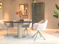 Tafel Trappes - Ø150cm - night glow - verjongd - metaalkleur magnum - met onze eetkamerstoelen Fiorentino en Fordham